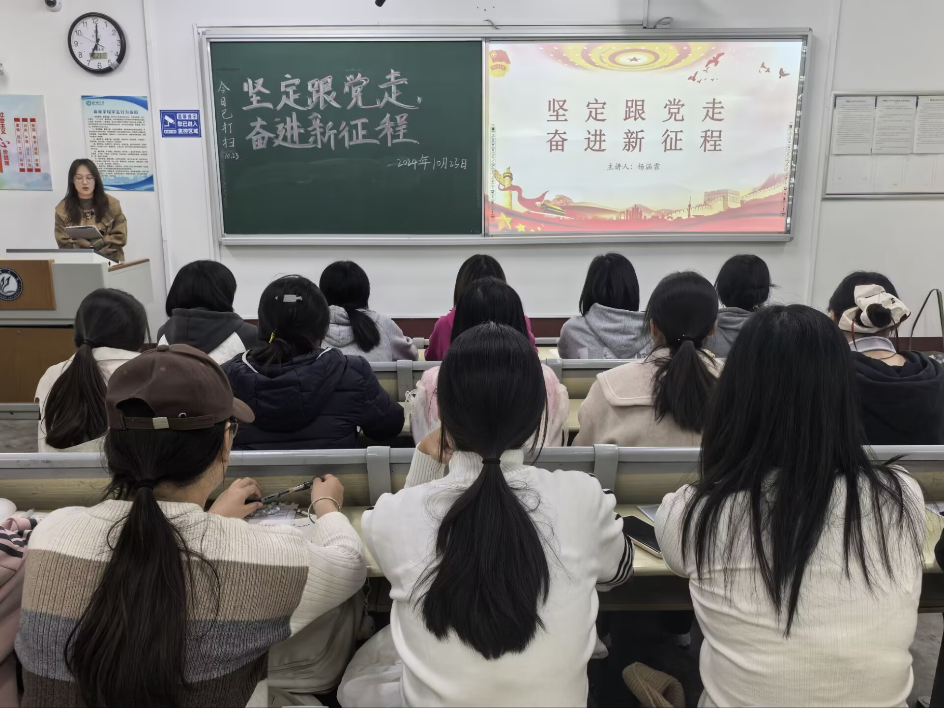 中国共青团始终坚持中国共产党的领导,团结广大青年坚定理想信念,奉献青春力量。高甲炜、刘雨哲带来的团课《新时代的共青团员》《青春挺膺共担当,团聚青年谱华章》以理想信念为引入点,深入剖析新时代共青团员应具备的特质,点明共青团员应当背负的责任与义务,激励全体入团积极分子为成为优秀的新时代共青团员而努力。由侯新月、杨涵霏主讲的《学习党的二十届三中全会精神》《坚定跟党走,奋进新征程》强调共青团作为党的助手和后备军的重要地位,鼓励入团积极分子继承和发扬共青团的光荣传统,时刻坚持党的领导,为实现党的第二个百年奋斗目标贡献青春力量。
