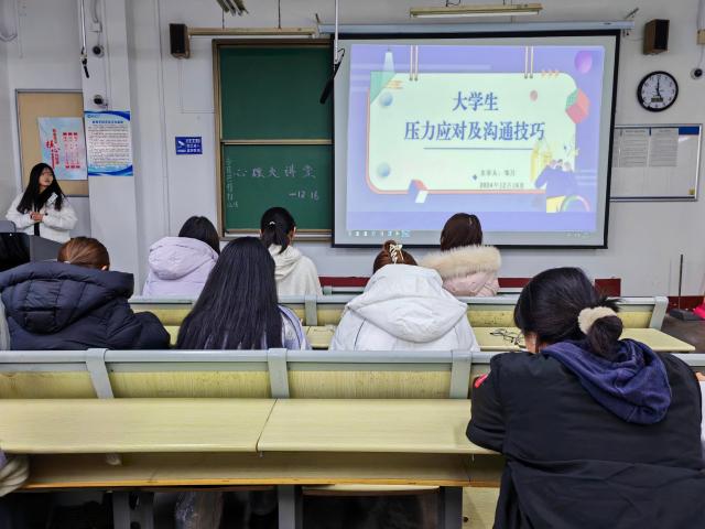 12月16日,十大菠菜平台排名 于西校区10#C531开展“心理大讲堂”青马工程培训课程,聊城大学心理中心研究生助理邹月担任主讲人,十大菠菜平台排名 青马工程基础培训班全体学员参加此次活动。