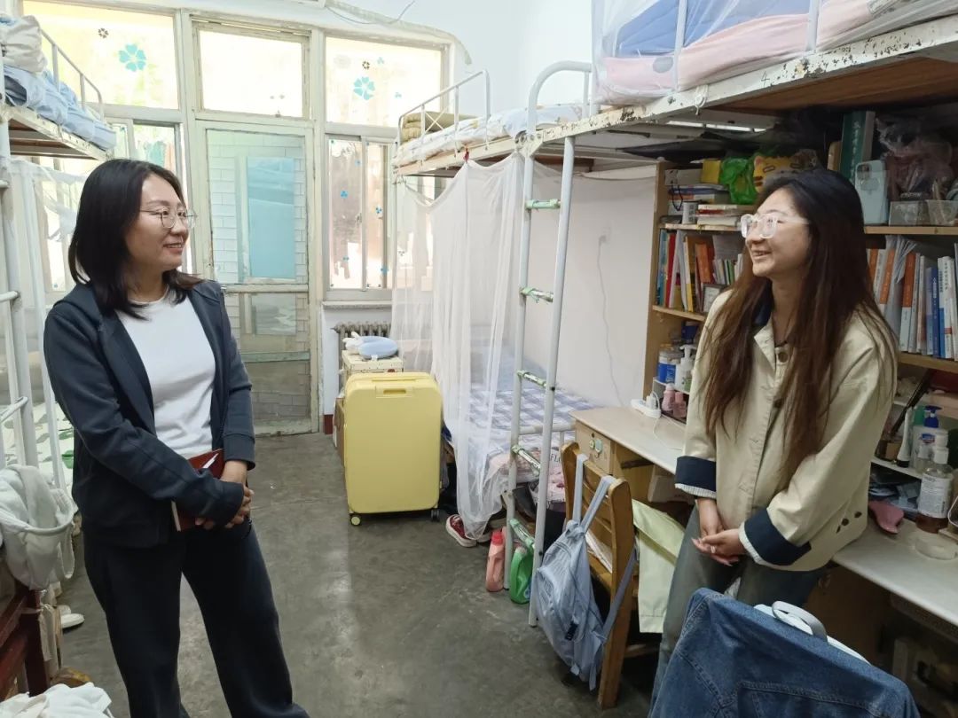 为深入了解学生思想动态和生活需求,进一步强化学风建设与宿舍安全管理,4月17日下午,十大菠菜平台排名 党委副书记、副院长刘洁带领辅导员时林超深入学生社区(宿舍),开展安全内务大检查,并为同学们送去暖心关怀与学业指导。