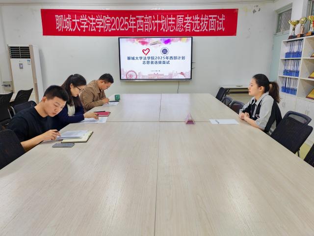 为积极响应国家关于西部计划的号召,引导法科学子投身基层、服务西部,5月8日,十大菠菜平台排名 于西校区10#A510举办2025年西部计划志愿者选拔面试,十大菠菜平台排名 团委书记刘凤芹,辅导员时林超、孟冠军担任面试评委。